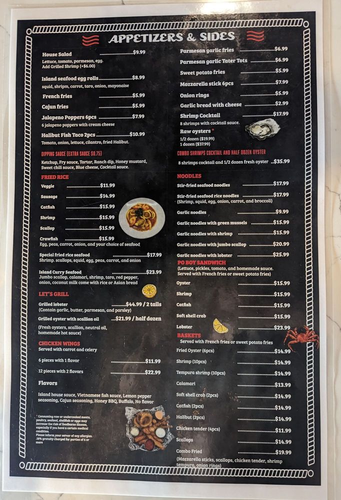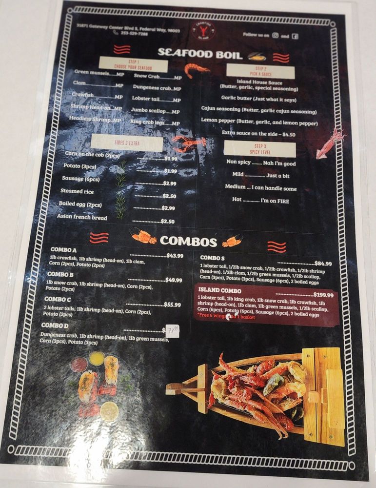 Within the bustling food scene of Federal Way, Washington, Crawfish Island stands out as a crowd favorite. Offering a fusion of Fish & Chips, Seafood, and Vietnamese cuisine, this restaurant is a seafood enthusiast's paradise. From island seafood egg rolls to Cajun fries and build-your-own seafood boils featuring options like snow crab and shrimp, the menu is a diverse mix of flavors and textures. Customers rave about the delicious garlic butter sauce, generous portion sizes, and the welcoming ambiance of the tiki bar. Whether you're craving a seafood boil or exploring their varied appetizers and sides, Crawfish Island promises a delightful dining experience that will leave you coming back for more. With exceptional service and a menu designed to satisfy all seafood cravings, this restaurant is a must-visit for any food lover in the area.